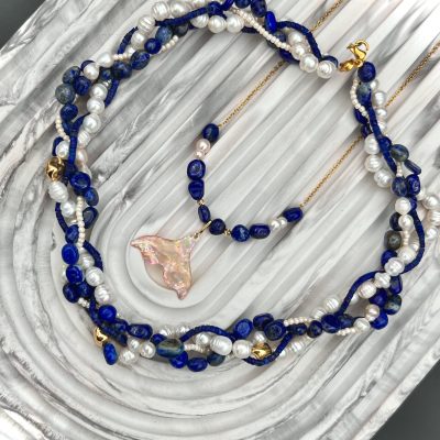 گردنبند لاجورد-مروارید تاب زردر